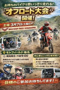 今回は、 お持ちのバイクで思いっきり走れるオフロードイベントです!